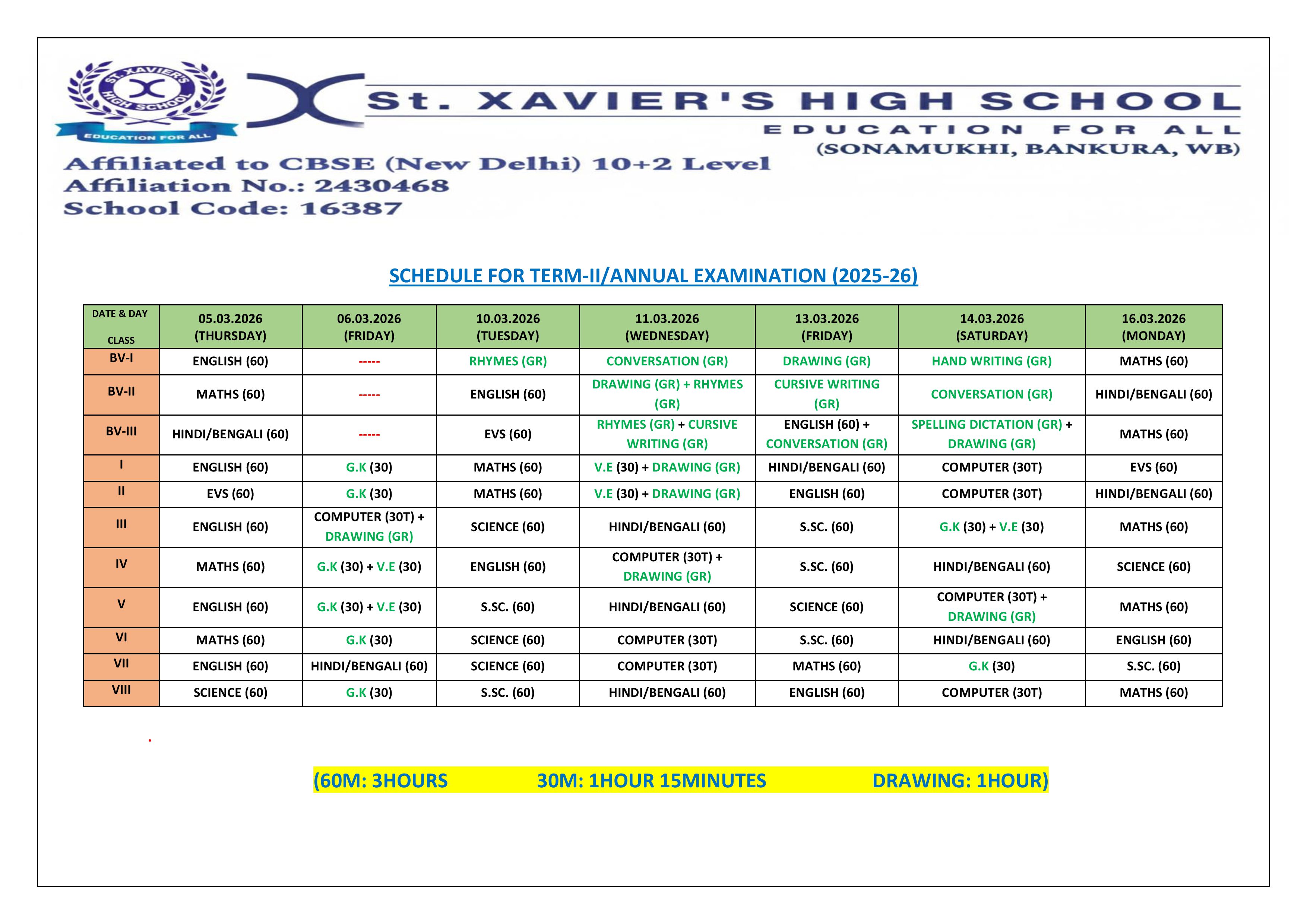 TERM-II/ANNUAL EXAMINATION SCHEDULE FOR 2025-26