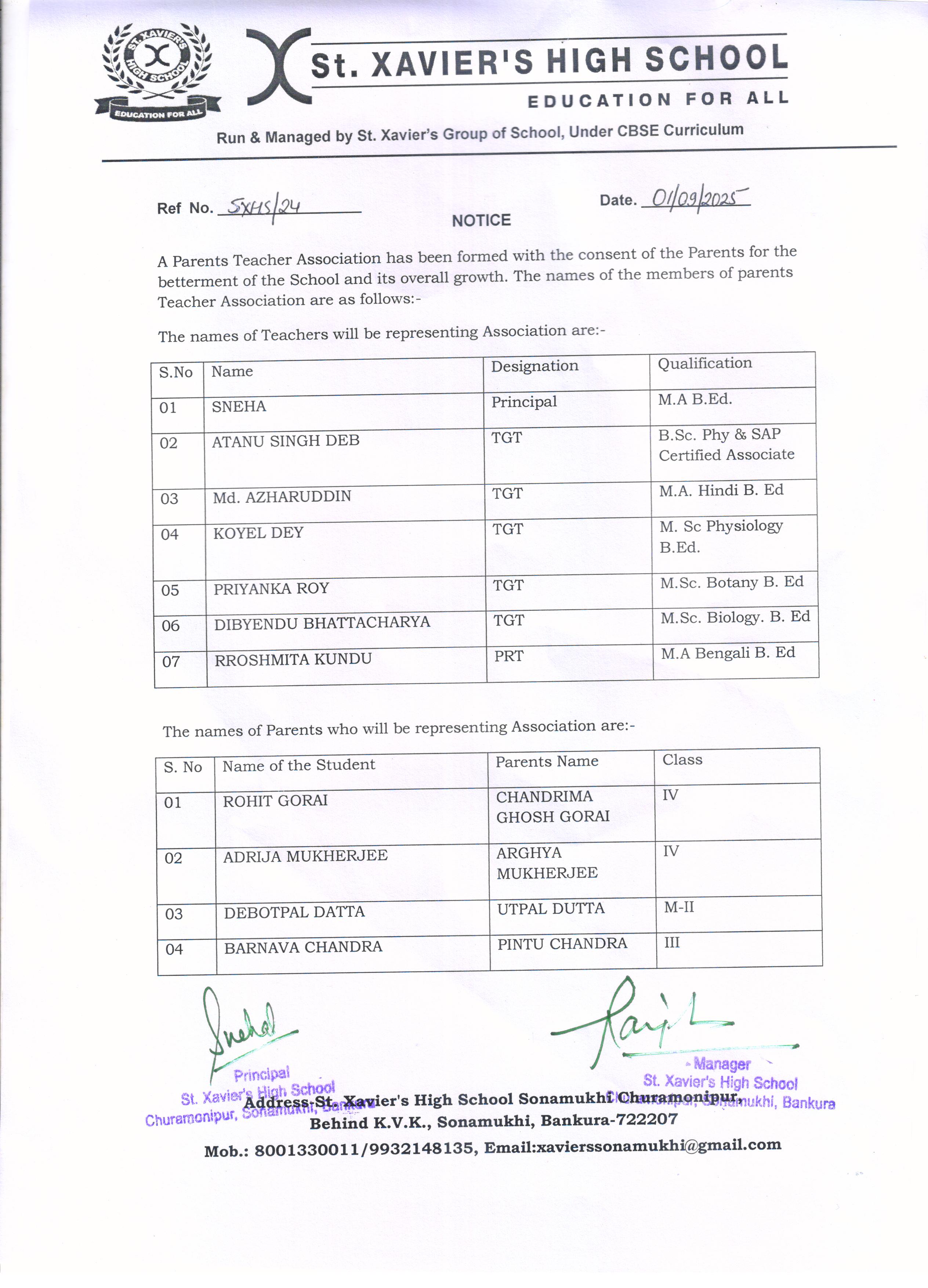 | 1 | NAME OF THE SCHOOL | St XAVIERS HIGH SCHOOL SONAMUKHI |